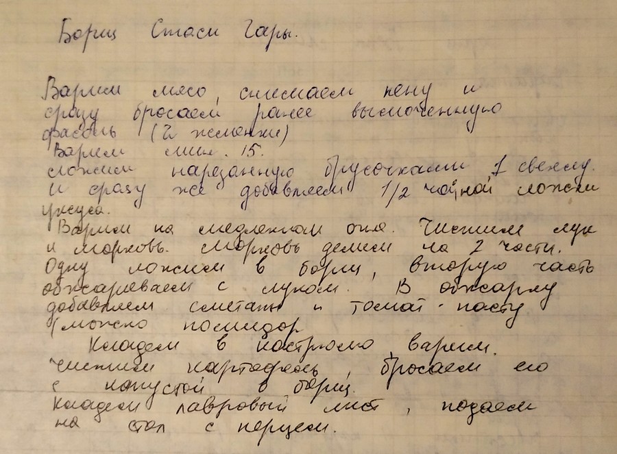 Затем вместе с мужем жила в Польше. Привезла рецепт борща от Стаси Гары (вариант 1 и вариант 2).